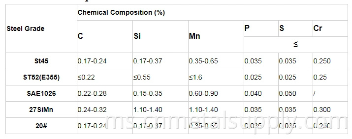 ST45, ST52, E355, E355SR, STKM13C, SAE1026, 20#, Q235B, CK45... |